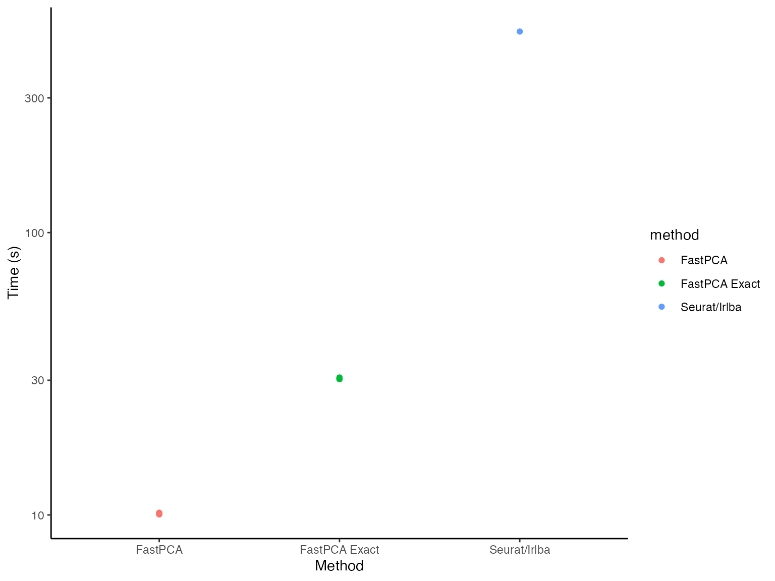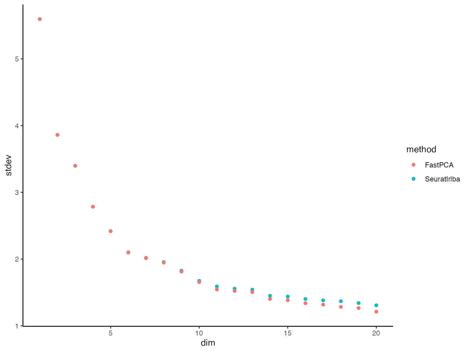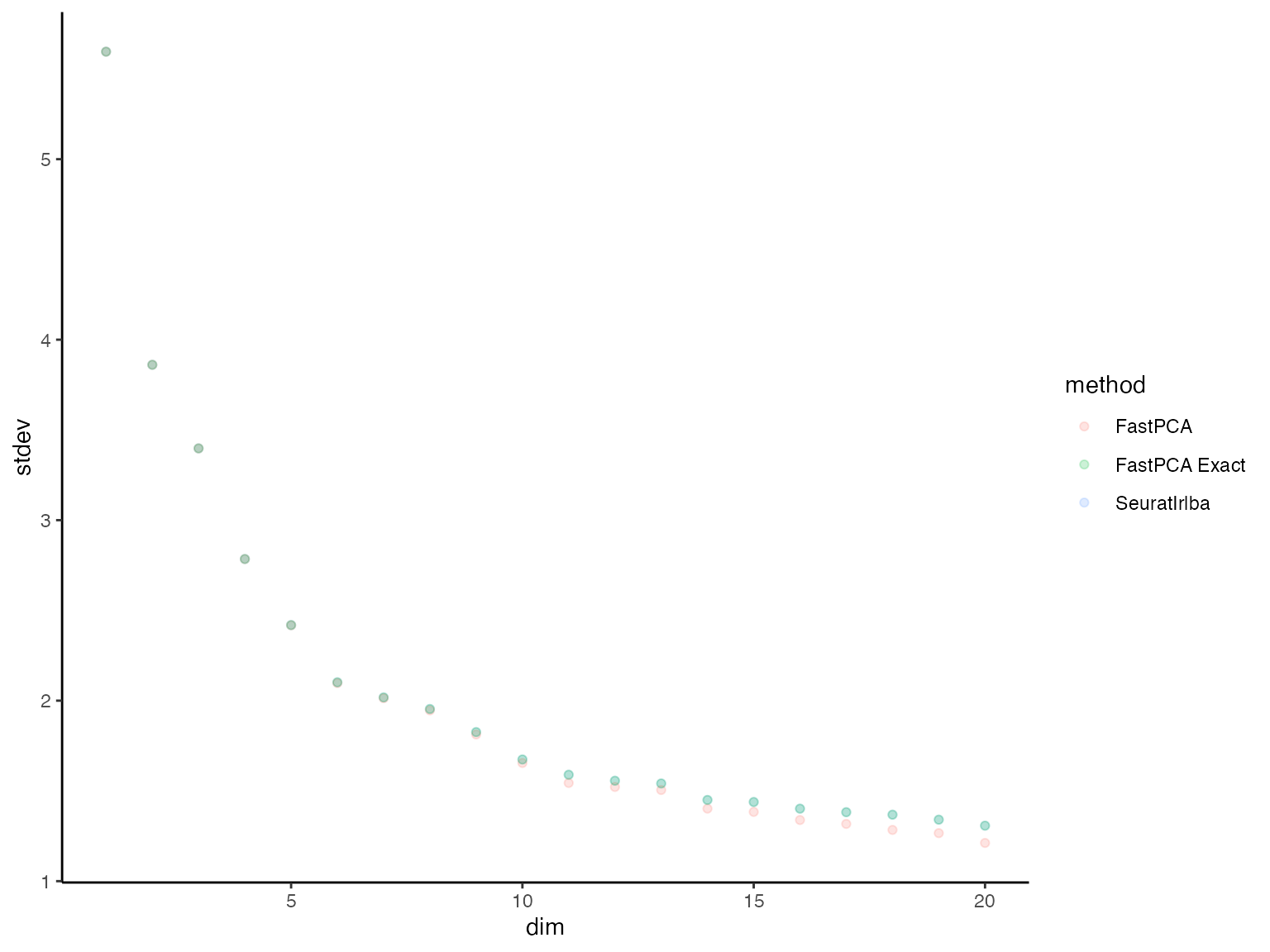 #> 15 1.383696 15 FastPCA 617.4324 0.1957693View same for Seurat/irlba: